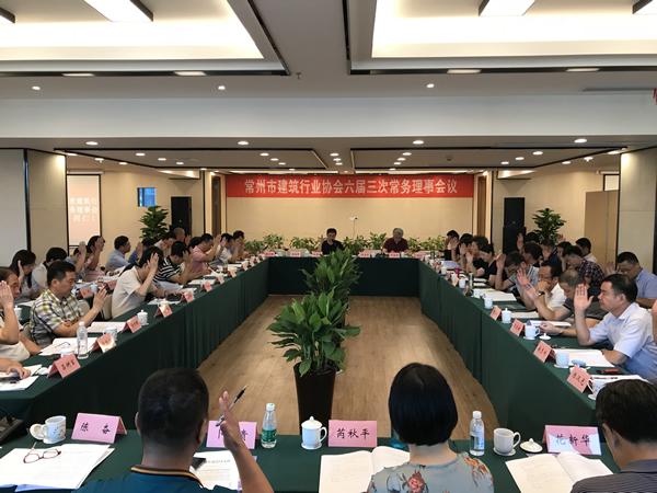 觀摩結束后,在集團會議室聽取了常州市建筑行業(yè)協(xié)會和檢測分會的2018年上半年工作總結和下半年工作計劃,審議并通過了關于成立建筑產業(yè)現(xiàn)代化分會的申請、分會工作規(guī)程等事項。