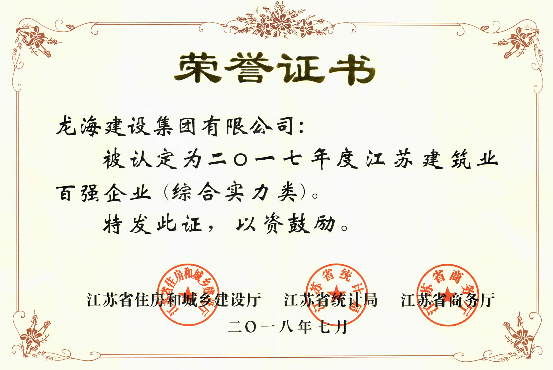 為充分發(fā)揮優(yōu)勢(shì)骨干企業(yè)在全行業(yè)中的示范引領(lǐng)作用,打造企業(yè)品牌形象,省住房城鄉(xiāng)建設(shè)廳、統(tǒng)計(jì)局、商務(wù)廳成立了“百?gòu)?qiáng)企業(yè)”認(rèn)定委員會(huì),并按照有關(guān)程序,組織開(kāi)展了2017年度建筑業(yè)“百?gòu)?qiáng)企業(yè)”認(rèn)定活動(dòng)。經(jīng)評(píng)審,集團(tuán)公司脫穎而出,被授予“2017年度江蘇省建筑業(yè)百?gòu)?qiáng)企業(yè)(綜合實(shí)力類(lèi))”榮譽(yù)稱(chēng)號(hào),位列第二十二。按照《江蘇省建筑業(yè)企業(yè)信用綜合評(píng)價(jià)辦法》(蘇建建管〔2016〕82號(hào))文件精神,自發(fā)布之日起的一年內(nèi),“百?gòu)?qiáng)企業(yè)”可在施工企業(yè)信用考評(píng)中作為省級(jí)獎(jiǎng)勵(lì)予以加分。