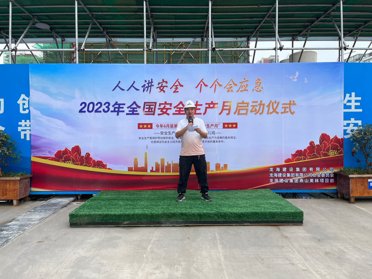 活動(dòng)在燕山美林項(xiàng)目現(xiàn)場舉行,常務(wù)副總王龍海啟動(dòng)安全生產(chǎn)月活動(dòng),并做了動(dòng)員講話。他表示,要以扎實(shí)有效的舉措,規(guī)范管理行為和作業(yè)行為,進(jìn)一步完善安全生產(chǎn)責(zé)任體系,全力保障項(xiàng)目安全生產(chǎn)向好向快發(fā)展。同時(shí)提出三點(diǎn)要求:一要堅(jiān)持人民至上、生命至上,進(jìn)一步增強(qiáng)安全意識(shí),保證安全生產(chǎn);二要精心組織“安全生產(chǎn)月”宣傳活動(dòng),切實(shí)把安全知識(shí)送到基層一線;三要嚴(yán)格執(zhí)行各項(xiàng)制度,完善各項(xiàng)措施,堅(jiān)決杜絕事故發(fā)生。